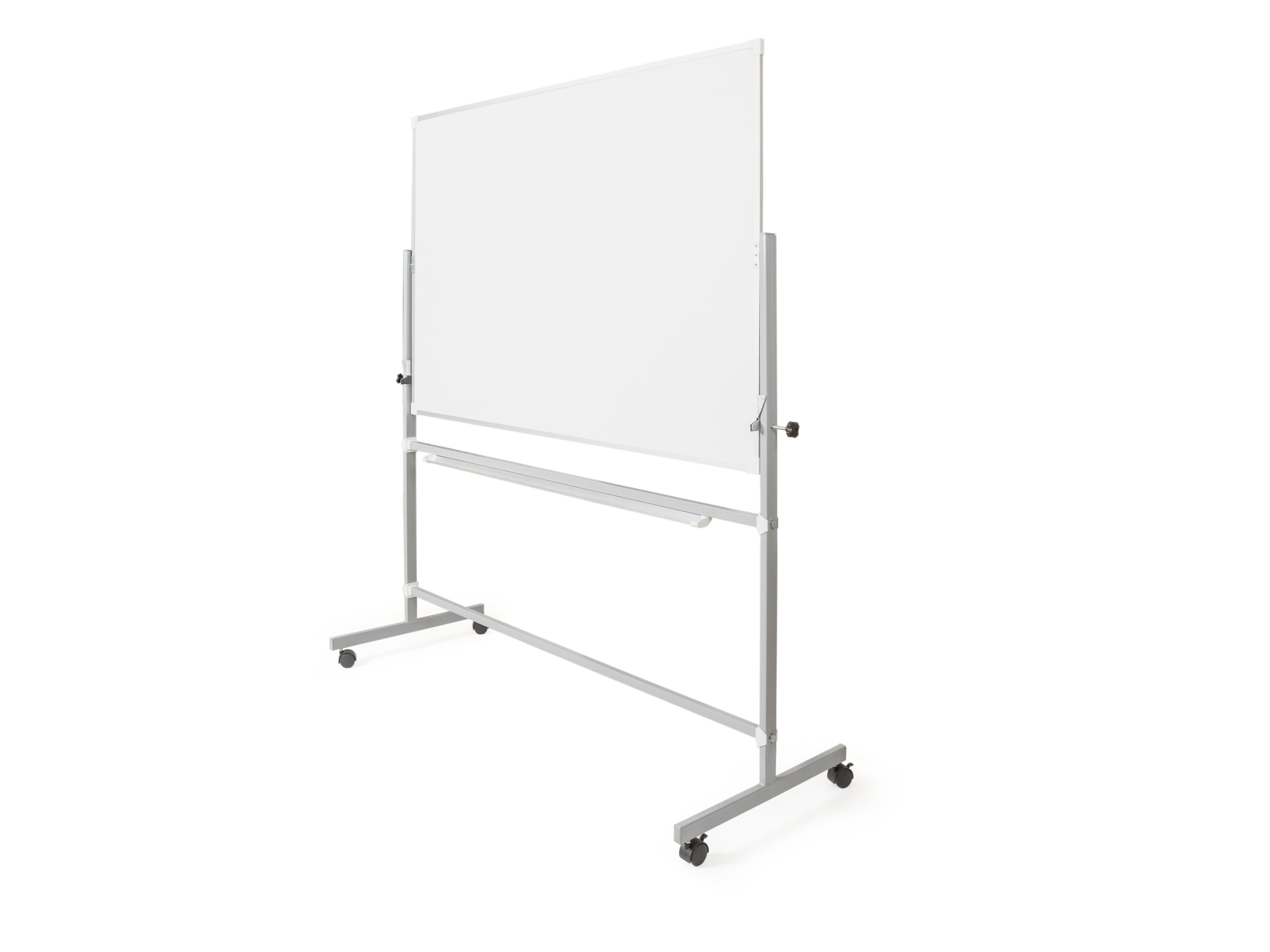 Передвижная поворотная доска установлена на металлической стойке, позволяющей ей поворачиваться вокруг горизонтальной оси. Обрамление доски — высокопрочный алюминиевый профиль, благодаря чему имеет высокую износоустойчивость и прочность. Вы также можете размещать дополнительные наглядные материалы, плакаты и использовать доску в качестве экрана для проектора. Имеется лоток для мела/маркеров и принадлежностей.
