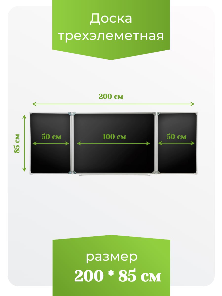 Трёхэлементная магнитная полимерная школьная доска 2000х850 чёрная