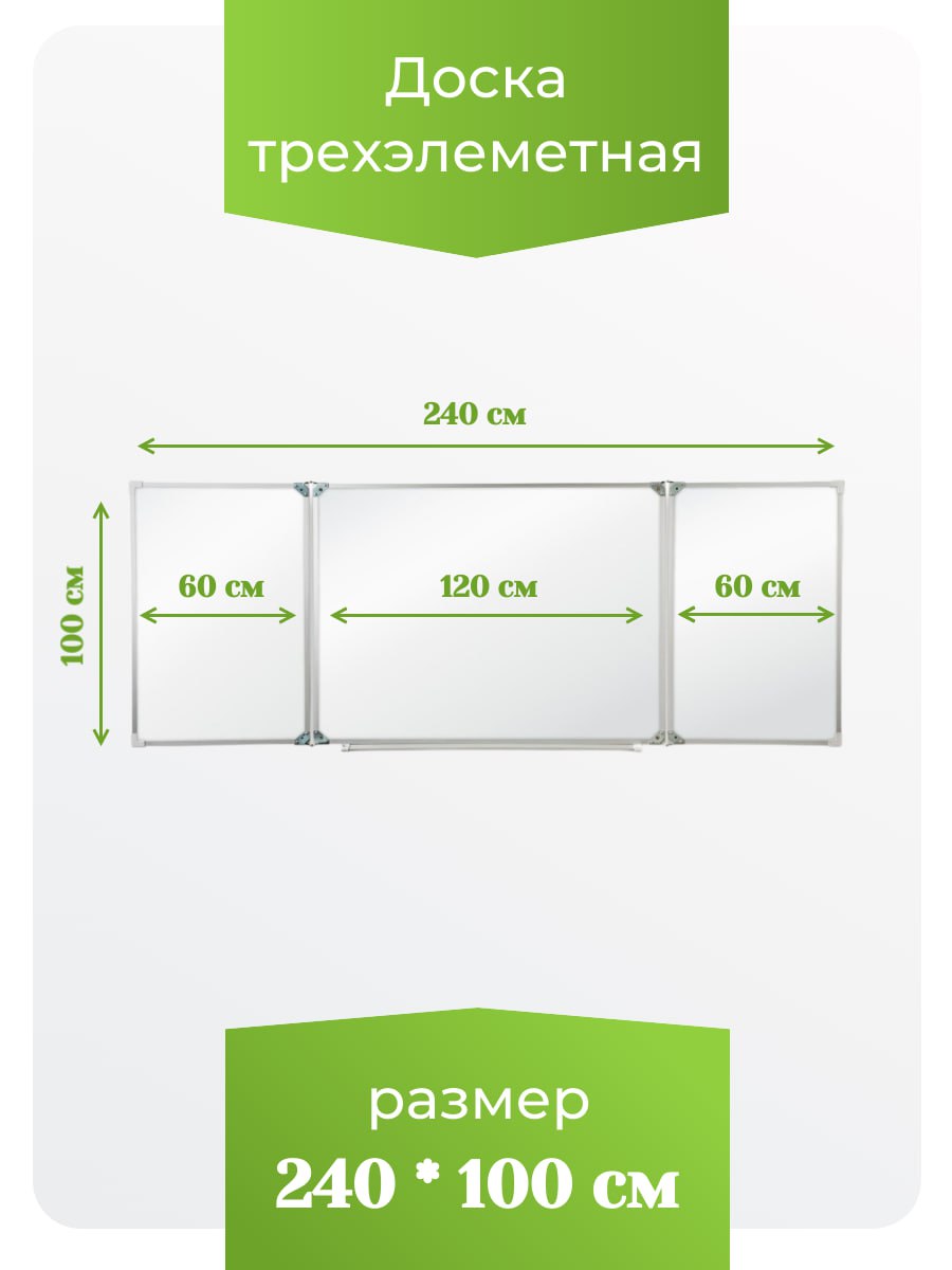 Трёхэлементная магнитная полимерная школьная доска 2400х1000 (маркерная)